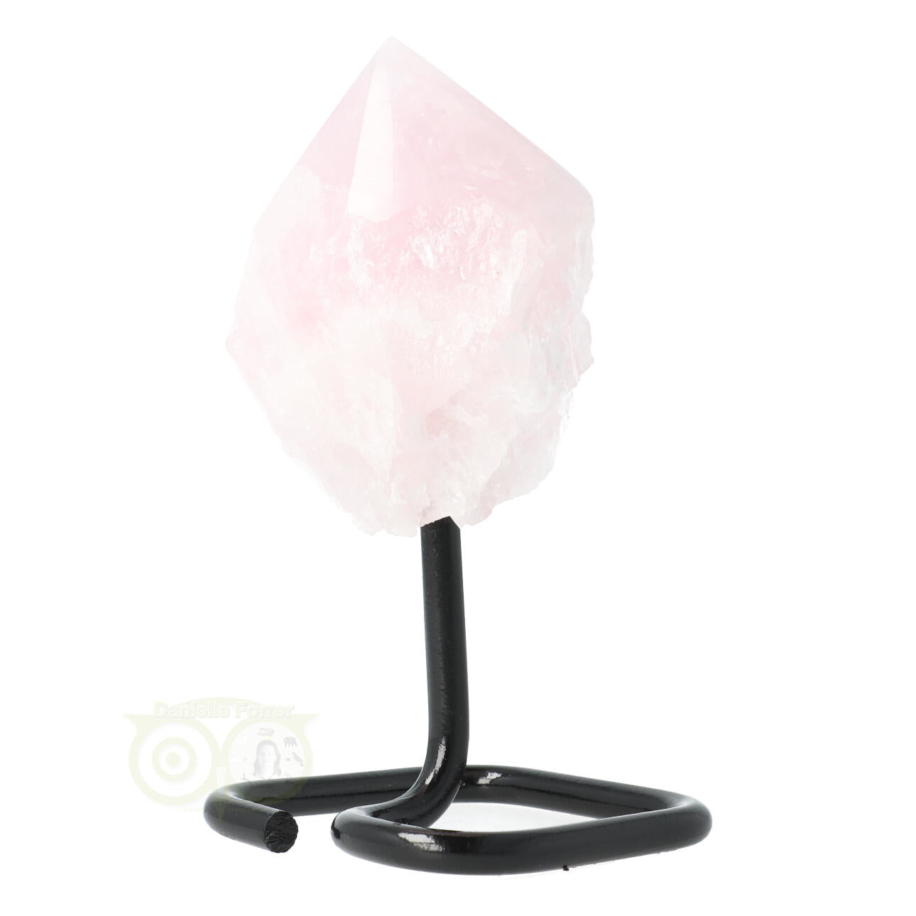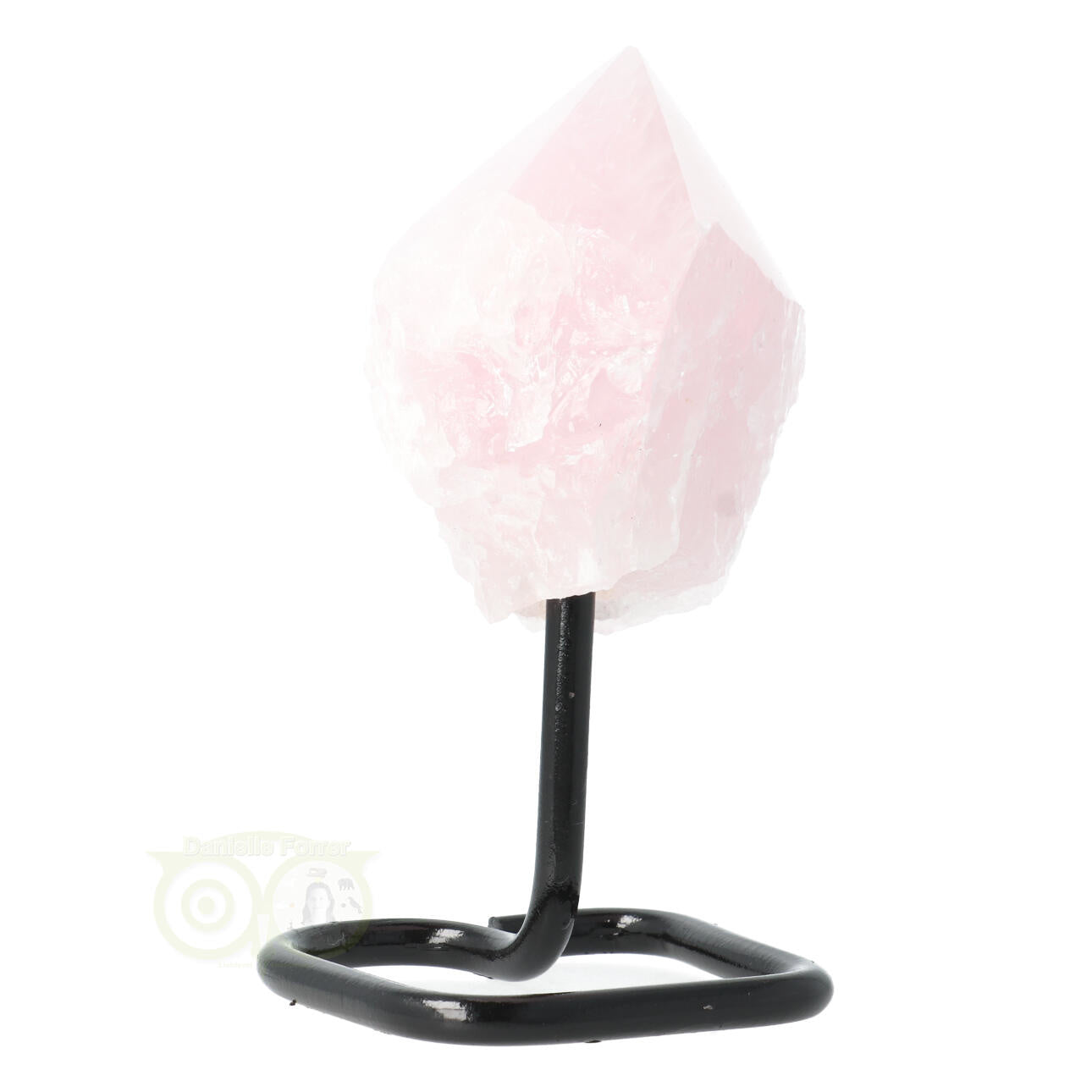 Rosenquarz-Generatorspitze auf Metallständer Nr. 16 – 315 Gramm – Brasilien