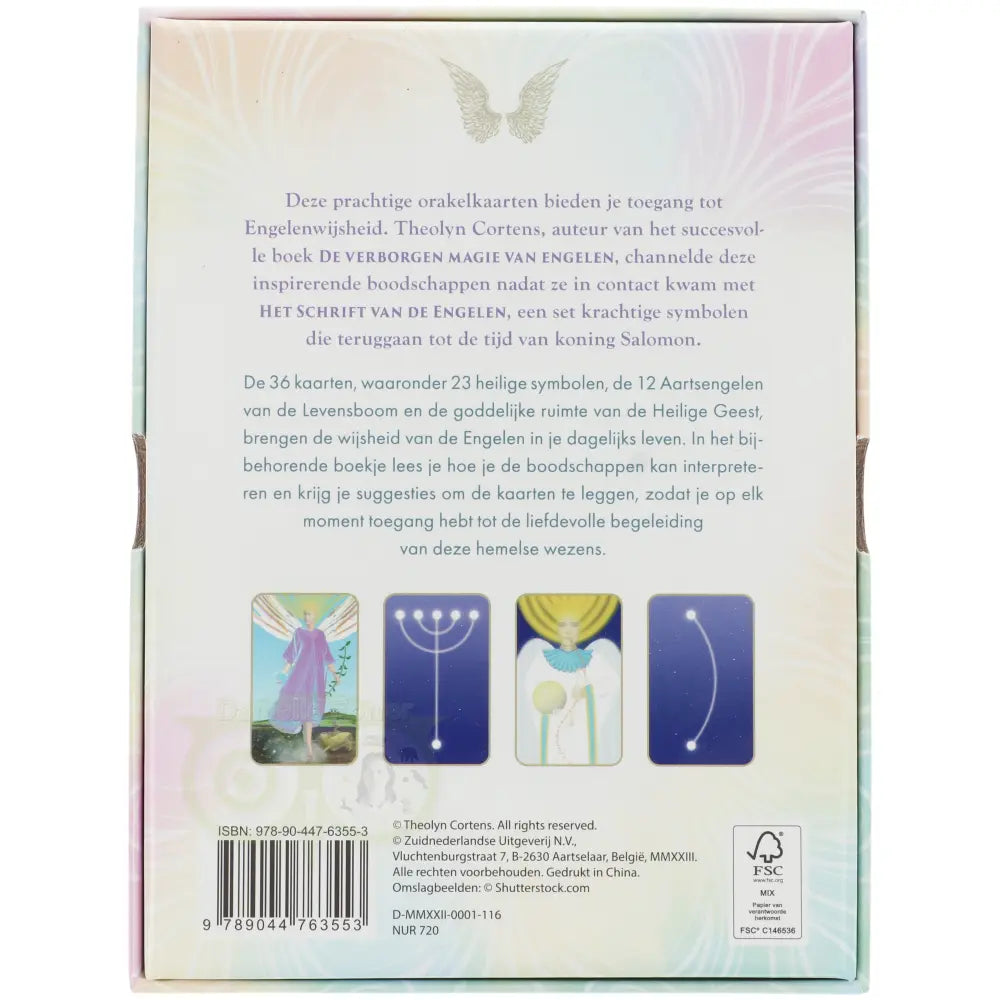 Deze prachtige orakelkaarten bieden je toegang tot Engelenwijsheid. Theolyn Cortens, auteur van het succesvolle boek 'De verborgen magie van engelen', channelde deze inspirerende boodschappen nadat ze in contact kwam met Het Schrift van de Engelen, een set krachtige symbolen die teruggaat tot de tijd van koning Salomon.